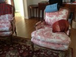 See the selection of photographs showing before and after shots for this project below. Before – Living Room After – Living Room After Before – Bergeres After – Reupholstering & custom patina